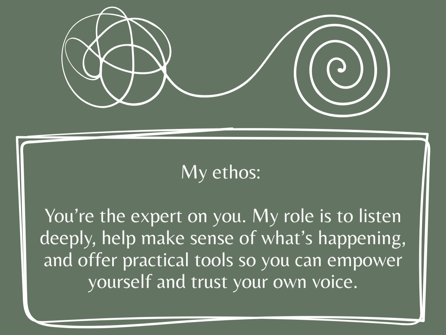 I often work creatively (e.g., imagery, writing, simple exercises) and weave in mindfulness to steady the mind and body. My focus is your emotional wellbeing, self-awareness, and helping you feel more like yourself again.